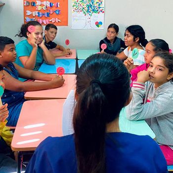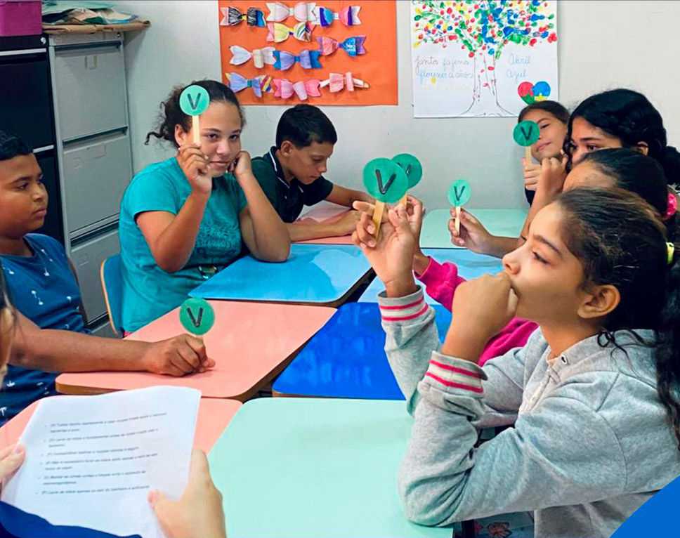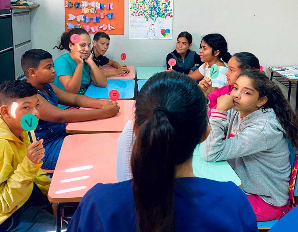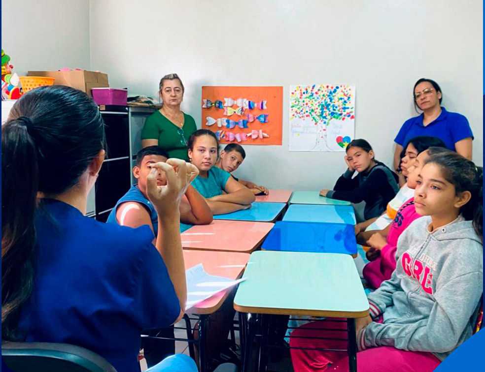 Durante o bate-papo, foram discutidos hábitos como tomar banho regularmente, escovar os dentes após as refeições, lavar bem as mãos e manter unhas e roupas limpas. As crianças também tiveram espaço para compartilhar suas rotinas e esclarecer dúvidas, tornando o momento mais participativo e dinâmico.