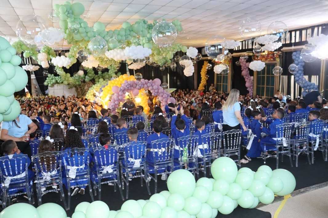 Um clima de encanto e emoção tomou conta do Rotary Club, na última terça-feira, durante a formatura conjunta de centenas de alunos da rede municipal de ensino. Com o tema “Mundo Encantado”, o evento celebrou o encerramento de ciclos escolares nas instituições Frei Teodósio, Gomes da Silva, Geralda de Carvalho e nos CEMEIs Antônio Gomes Pinheiro e Simpliciano Martins de Souza.