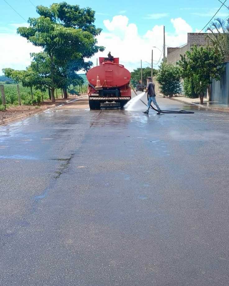 Em pontos considerados críticos, o caminhão-pipa é acionado para a lavagem de ruas e calçadas, reforçando o compromisso da administração municipal com a limpeza urbana e a saúde pública.