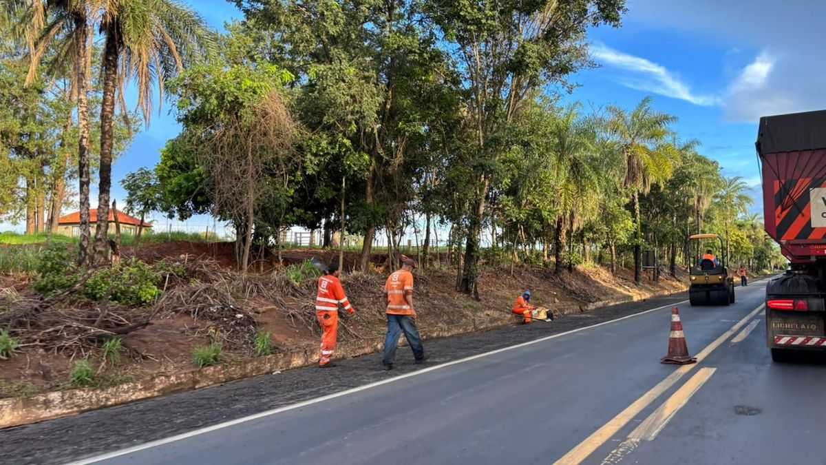 Durante a apuração, foi possível registrar equipes da Triunfo Concebra realizando operações de tapa-buraco, inclusive sob chuva. O método aplicado — com massa asfáltica fria lançada sobre buracos com acúmulo de água e sujeira — tem caráter paliativo e não resolve estruturalmente o problema.