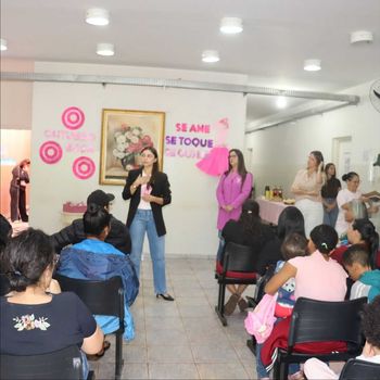 Em uma ação voltada à conscientização sobre a saúde da mulher, o Centro Estadual de Atenção Especializada (CEAE) realizou, nesta quarta-feira, uma palestra alusiva à campanha Outubro Rosa. O evento reuniu dezenas de participantes e foi conduzido pela psicóloga Andreza Morais e pela assistente social Elisangela Lopes Siqueira, com o apoio da secretária de Saúde, Gilci Pansani.