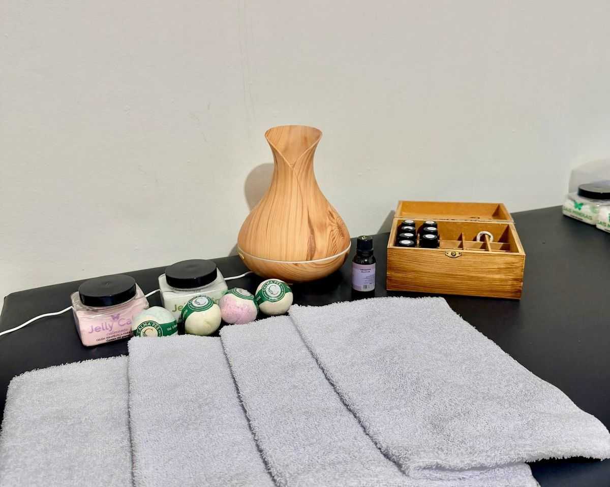 A programação também contou com aromaterapia como prática complementar, contribuindo para o relaxamento, o equilíbrio emocional e o fortalecimento do cuidado integral.