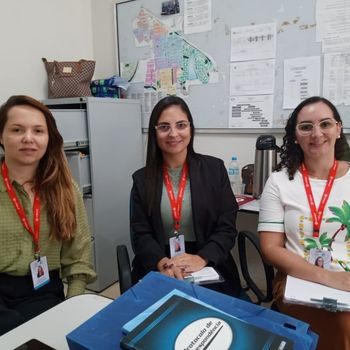 Participaram do encontro Jarbas Lima Queiroz, Assessor em Vigilância em Saúde, Denise de Oliveira, enfermeira da Vigilância Sanitária, e Lucas Favaro, servidor do setor administrativo.