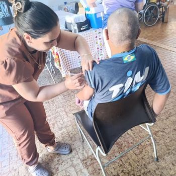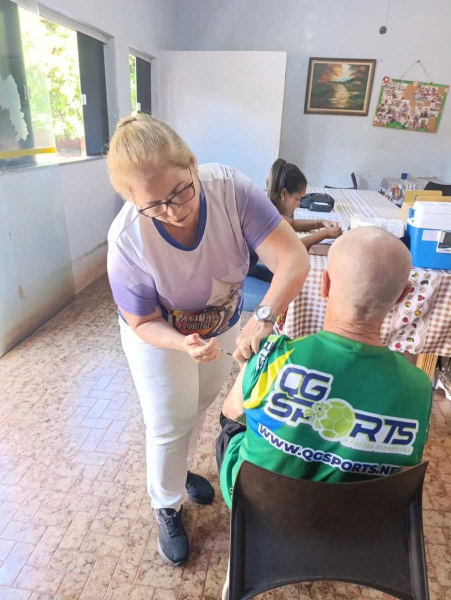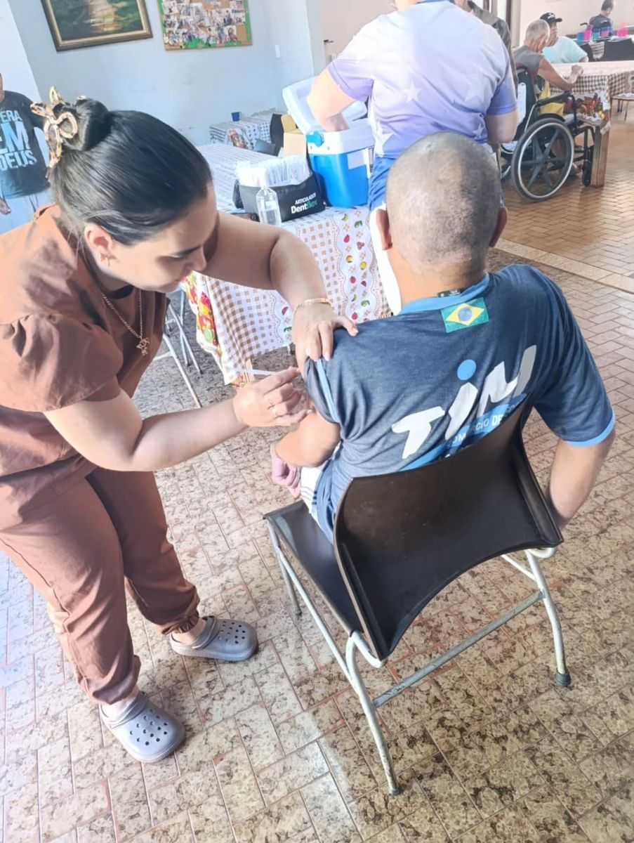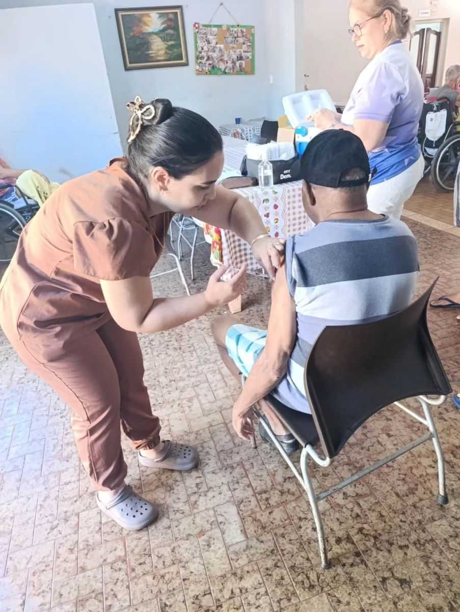 No dia 30 de março, profissionais da saúde estiveram no Abrigo Jerônimo de Paula Assunção para imunizar os idosos residentes e também os colaboradores da instituição. A iniciativa busca garantir que pessoas com maior dificuldade de deslocamento tenham acesso à vacina, ampliando a cobertura e reforçando a prevenção.